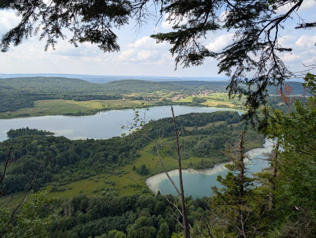 Depuis le belvédère des 4 Lacs, tu domines une série de lacs bleus et verts – Ilay, Narlay, Petit et Grand Maclu – dans un décor de carte postale.